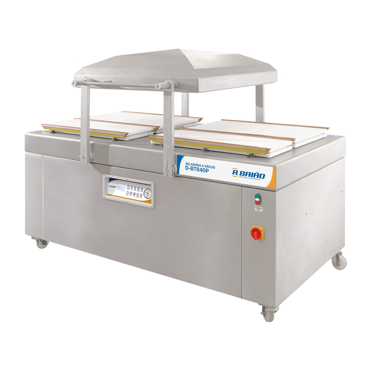 A Seladora a Vácuo de Câmara Dupla Industrial D-BT840P, é construída em estrutura e cúpula robusta em aço inox 304, com rodízios para facilitar a locomoção do equipamento e bomba com capacidade de 360m³/h. Barras de selagem em fibra de vidro acionadas por cilindros, garantindo maior durabilidade. Possui painel digital impermeável de acordo com a classificação IP65 e memória para 15 programas, contador de processos, horímetro que indica o momento de trocar o óleo e botão “PARE” para interromper o processo em qualquer estágio, caso seja necessário. |