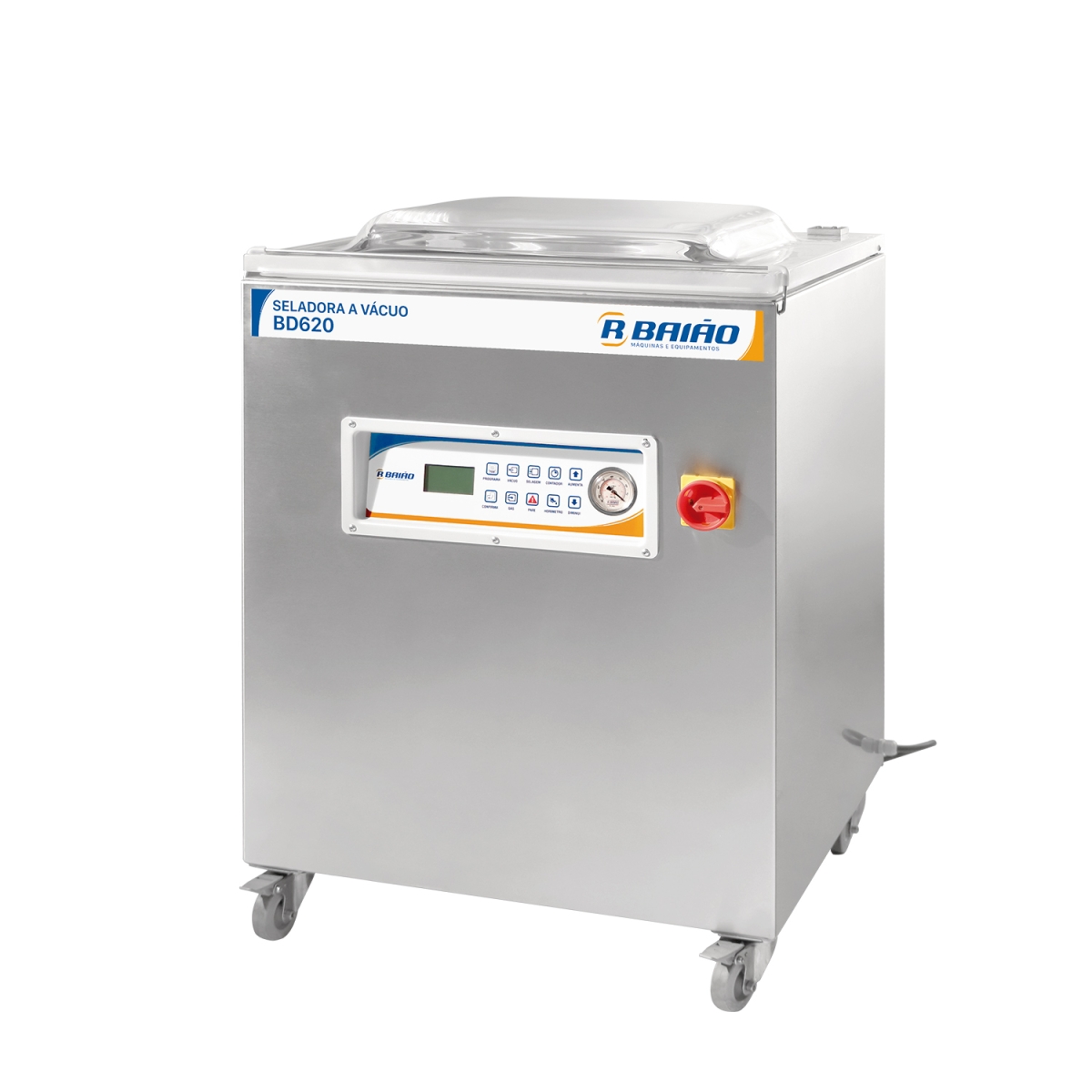 A Seladora a Vácuo de Câmara Industrial de Gabinete BD620, é construída em estrutura robusta de aço inox 304, com rodízios para facilitar a locomoção do equipamento e bomba com capacidade de 76m³/h. Tampa de acrílico de 25 milímetros, barra de selagem em fibra de vidro acionada por cilindros, garantindo maior durabilidade e cuba com cantos arredondados para facilitar a limpeza. Possui painel digital impermeável de acordo com a classificação IP65 e memória para 15 programas, contador de processos, horímetro que indica o momento de trocar o óleo e botão “PARE” para interromper o processo em qualquer estágio, caso seja necessário. |