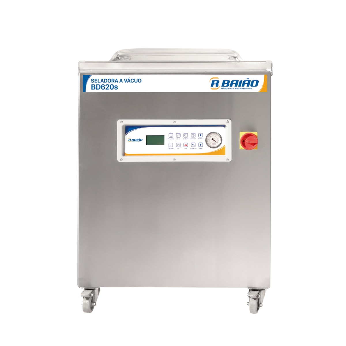 A Seladora a Vácuo de Câmara Industrial de Gabinete BD620s, é construída em estrutura robusta de aço inox 304, com rodízios para facilitar a locomoção do equipamento e 2 bombas de vácuo com capacidade de 24m³/h cada uma, somando um total de 48m³/h. Tampa de acrílico de 25 milímetros, barra de selagem em fibra de vidro acionada por cilindros, garantindo maior durabilidade e cuba com cantos arredondados para facilitar a limpeza. Possui painel digital impermeável de acordo com a classificação IP65 e memória para 15 programas, contador de processos, horímetro que indica o momento de trocar o óleo e botão “PARE” para interromper o processo em qualquer estágio, caso seja necessário. |